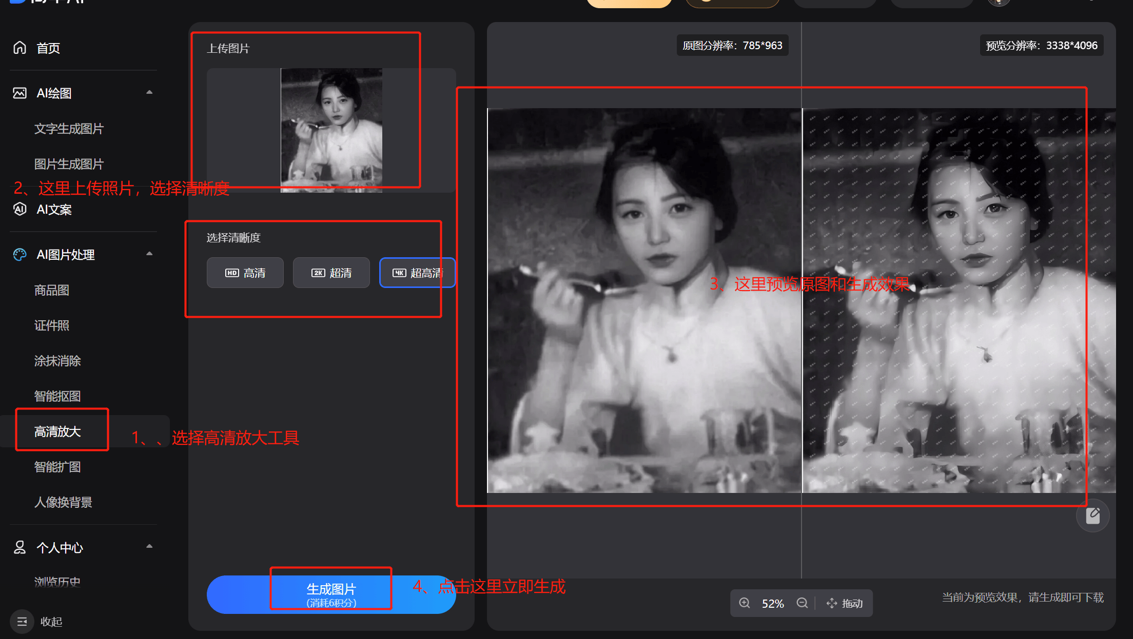 涂抹选择要消弭的区域和人物,一曲乌龟爬上岸这种搞笑案例,高清放大也能够自定义布景,有时候比例和都对不上,点击链接,无法完全精准地节制生成图片的内容,唯美照恶搞照,老友的照片,562万人正在加入挑和AI扩图。是由于AIGC算法尚未成熟,试着给家里的长辈修复一张老照片。